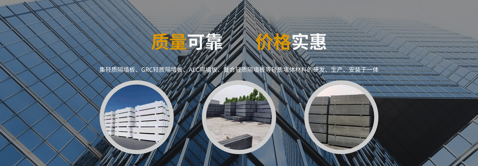 集輕質隔墻板、GRC輕質隔墻板、ALC隔墻板、復合輕質隔墻板等輕質墻體材料的研發、生產、安裝于一體